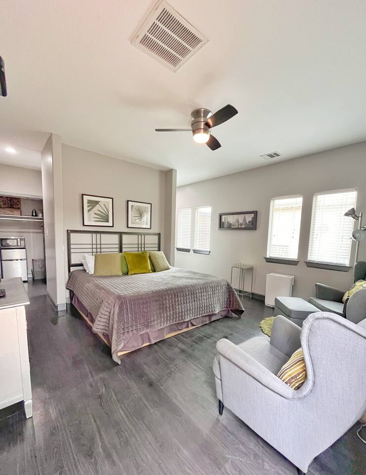 Villa #2 at Fortunata Winery offers an intimate, stylish escape designed for rest and relaxation. With cozy modern décor and thoughtful amenities, this peaceful villa is perfect for couples seeking a romantic retreat just steps from the Fortunata tasting room. Inside, you'll find: A plush king bed with deluxe linens for ultimate comfort A private bathroom with a sleek walk-in shower A cozy seating area ideal for morning coffee or winding down after wine tasting Enjoy a private refreshment nook featuring a mini fridge, microwave, and coffee station—ideal for light meals or a morning pick-me-up. Additional amenities include: -Free WiFi + Cable TV -Toiletries + Fresh Towels -Private entrance + dedicated parking -Walkable access to the tasting room -Quick access to Highway 380 Whether you're enjoying a romantic weekend or a peaceful solo retreat, Villa #2 is a cozy, well-appointed base for your Fortunata Winery experience. Sleeps 2 guests. No pets allowed.
